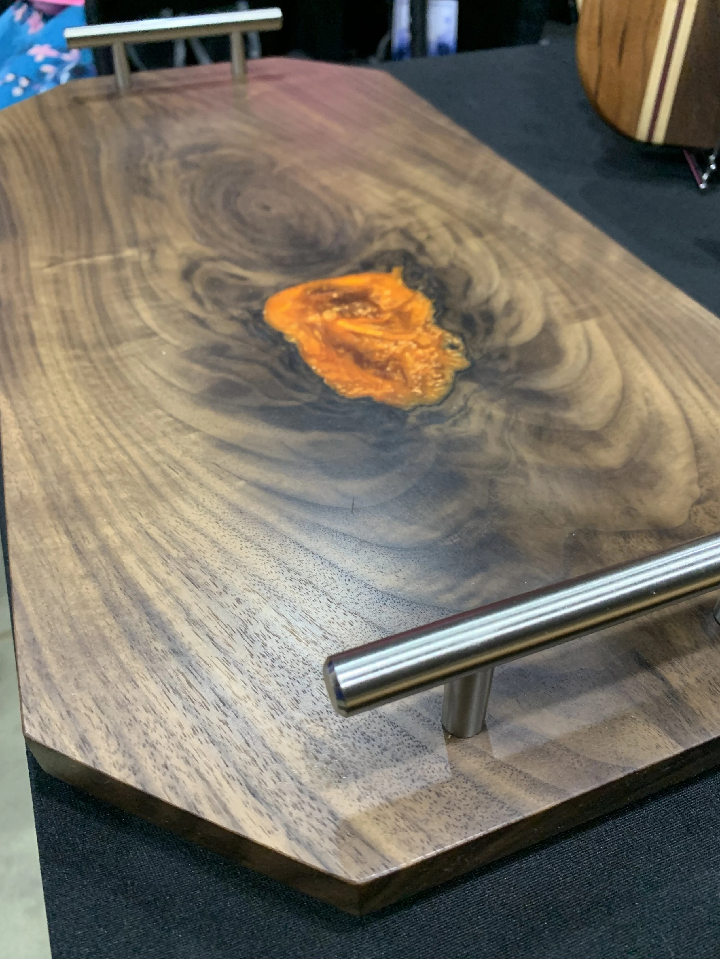 Our serving trays all have handles and have been finished with food safe finish’s. They may contain epoxy for a unique and dramatic look.